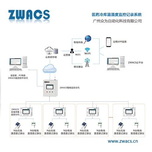 醫藥冷庫溫濕度監控記錄系統解決方案 ——ZWACS眾為自動化 前言概述: 實行對藥品的溫控是必不可少的措施。滿足國家對GSP《藥品經營質量管理規范》的要求與規范是我國對藥品存儲和運輸的重要指標。本系統保證了藥品儲運過程中的溫濕度監測,數據安全管理、風險預警與應急,強調系統的獨立性,防止因斷電等故障因素影響系統正常運行或造成數據丟失。確保藥品溫濕度數據的有效追溯性。 醫藥冷庫溫濕度監控記錄系統適用范圍與用途: 本系統提供適用于醫藥存儲環境及運輸途中,對環境的溫度濕度的監控記錄,如陰涼庫、冷庫、常溫庫、潔凈廠房車間等。 對各終端監測點的溫度、濕度采集記錄、并將數據傳辦理至智能溫濕度記錄主機,并24小時不間斷的監測記錄,提供數據存儲與分析,輸出打印曲線、圖形、數據等多種功能;根據監控室所設置的參數進行現場報警,分庫區報警,監控主機報警,定向報警等;各分庫區的管理人員可查詢所負責區域的溫濕度歷史情況和實況;,管控一體的目標,實現溫濕度的實時在線監管。 醫藥冷庫溫濕度監控記錄系統架構: